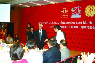 在随后与略萨的交流中,很多中国作家对他送上了真挚热烈的赞美。有记者问张抗抗:“略萨从获得提名到获奖经过了几十年的时间,来得是否晚了一点?”张抗抗说不晚。她说,文学作品需要时间证明,越晚获奖越证明其价值不可动摇。