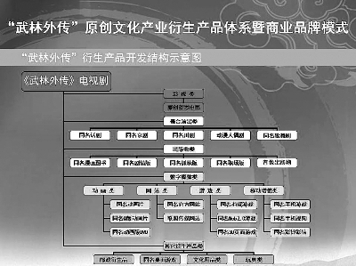 在这期间,北京联盟传媒又做了卡通片、动画片、漫画书、手机视频、话剧、川剧、动漫人偶戏,2010年又开始做web2.0的游戏,甚至还生产出相关毛绒玩具和文具以及邮票。到目前为止,《武林外传》共衍生出了24种产品。郝亚宁说:“我们做的《武林外传》的电影版,在去年526部影片当中,它的投入产出比是第一名。投入3000万,获得2.2亿元的票房,应该说为《武林外传》整个产业链的开发划上了完美的句号。”