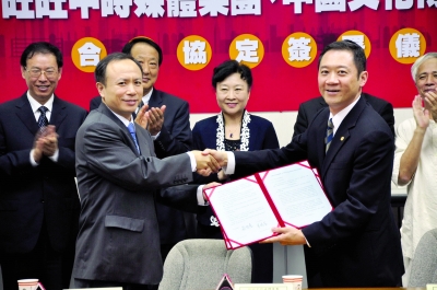 访问期间,正在台湾访问的文化部副部长兼中华文化联谊会会长赵少华出席了中国文化传媒集团与旺旺中时媒体集团战略合作协议签约仪式并发表了热情洋溢的讲话,她称赞两大媒体集团的签约是强强联合,必将促进各自的事业发展,实现双赢。中国文化传媒集团董事长兼中国文化报社社长孔繁灼和旺旺中时媒体集团总经理蔡绍中率领各自团队参加了签约仪式。中国文化传媒集团副总经理宋合意与旺旺中时媒体集团执行副总经理羊晓东分别代表各自集团签署了战略合作协议。此次签约是大陆中央级文化媒体与台湾重要传媒首次签署战略合作协议,不但标志着两岸传媒企业的合作有了重要突破性进展,也增添了两岸文化交流合作的新领域和新形态,增进了两岸文化创意产业的互动互惠。