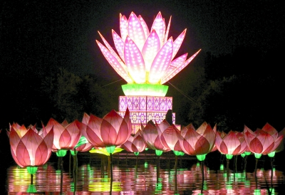 6月26日晚,世界最大造型灯——“中华和谐灯”在北京圆明园凤麟洲岛点亮,世界纪录协会工作人员现场宣布中华和谐灯成功申请为世界最大造型灯笼。至此,多彩中华——庆祝中国共产党建党90周年民族灯会暨圆明园第十六届荷花节开始面向公众开放,为百姓开设的夏季“欢乐大舞台”当晚也同时拉开大幕。本报记者 喻非卿 摄