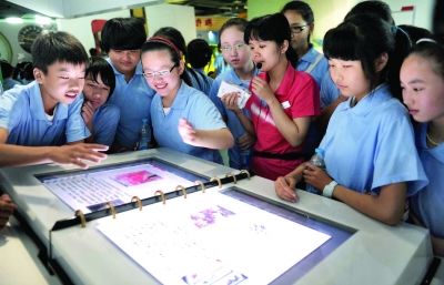 目前正值暑期,各地的留守儿童参加当地的文化站、图书馆、青少年活动中心、兴趣培训班等组织的丰富多彩的活动,快乐度暑假。图为安徽芜湖留守儿童在科技馆体验阅览电子书籍。