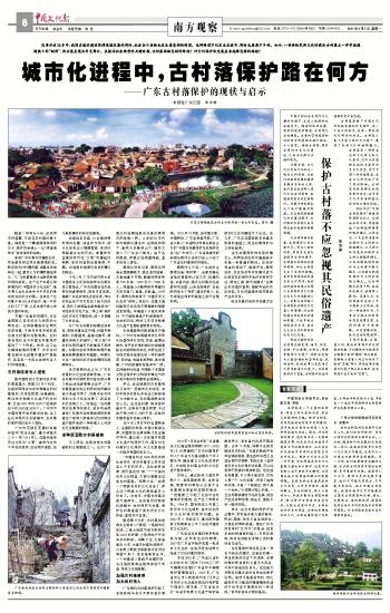 今年3月,广东外语外贸大学中国语言文化学院教师朱志刚发表文章指出,广东古村落存在的自我空间逐渐消失,而且非常迅速。随着广东经济率先迅速发展,传统的农业生产方式发生了巨大的改变,现代工商制造业愈来愈成为广东经济的支柱产业,“珠三角”城市化的步伐又不断加快,进一步吞噬了乡村社会。