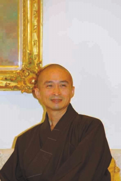 我们面前的见允法师,威仪端详,沉稳自在的模样,从容、悲悯、智慧的气度。才识渊博,说起话来深沉矜重,让人肃然起敬。他大学毕业,出家已经多年。接触佛法,让他颇品佛法蕴涵的素净喜悦,甘心为它舍弃红尘繁华。他的刻苦修炼,加上勤奋好学的天性,以及厚实的知识功底,比较早就脱颖而出,不仅成为众僧尊敬的副住持,而且成为常与外界对话的中台禅寺的新闻发言人。
