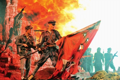 今年3月,在2011版《万水千山》的第一次带观众彩排中,一位“90后”观众的问话——红军是哪个朝代的——深深触动了主创者们的内心。“前两版《万水千山》都有各自的排演目的。今天复排的《万水千山》应该是个什么样子,我们的目的又是什么?”2011版《万水千山》总制作人张苇如此问自己。