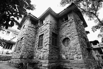 图一:梁漱溟旧居,原名花房子,建于20世纪40年代,原为国民党将领孙元良的私家别墅,房屋外墙嵌入许多形状不规则的石块,呈现独特的肌理效果,故名花房子。