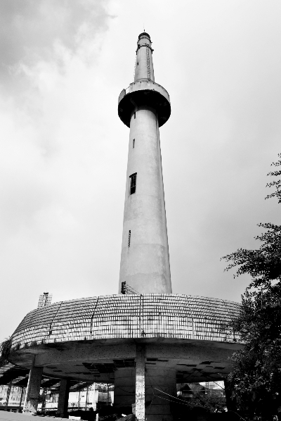图六:跳伞塔,位于重庆市渝中区,1942年4月4日建成,是我国也是当时远东地区高度最高、设备最好的跳伞塔,主要用作培训飞行员。