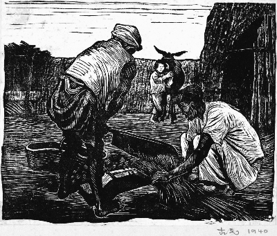 古元1919年生于广东珠海的一个农民家庭,自幼喜爱绘画。1938年古元北上入陕北公学,年末到达延安,随即成为鲁迅艺术学院美术系学员。延安时期,古元创作了版画、年画、宣传画、剪纸等作品200余件,短短几年便取得了显著的成绩。1942年,徐悲鸿在重庆《新民报》上撰文称“我在中华民国31年10月15日下午3时,发现中国艺术界中一卓绝之天才乃中国共产党之大艺术家古元”。