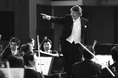 9月4日,由著名指挥家普拉松执棒,中国国家交响乐团在北京大学百周年纪念讲堂上演了一台高水平的交响音乐会。图为普拉松在指挥乐队演出。 本报记者 卢 旭 摄