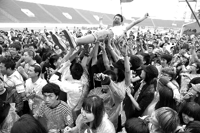 9月10日,泰山MAO国际音乐节上,“跳水”的乐迷。 本报记者 李 琤 摄