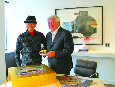 林跃不仅利用美国之行拜访了新朋友,他还回访了老朋友美国犹太裔联合会主席杰克·罗森、美中关系全国委员会会长欧伦斯等人。罗森等表示,将参加林跃今年9月在北京举办的个人画展,现场献上祝福。