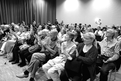 9月30日,艺术家们前往柏林中国文化中心,再次为德国朋友带来了精彩演出。当晚,柏林中国文化中心灯火通明,拥有300多个座位的多功能厅内座无虚席,来自陕西的艺术家们用热情的歌舞征服了在场的每一位观众。喜庆欢快的《陕西大秧歌》和红红火火的《陕西腰鼓》凸显出黄土高原特有的豪迈与阳刚之气,一开场便吸引了观众的眼球,博得了雷鸣般的掌声;吹奏唢呐《打枣》的演员使用两把真唢呐和口中含着的哨片交替演出,让现场观众真假莫辨,大家欢声笑语此起彼伏;舞蹈《露水地里穿红鞋》表现了陕北男女青年的热恋场面,观众也感受到了陕北姑娘的妩媚和塞上江南的柔美;歌舞《小场子》让人耳目一新,两位演员站在一张小方桌上连说带唱,甚至翩翩起舞,表演毫无凝滞之感,引来台下观众啧啧称奇;身着民族服装的陕北歌唱家在留德学生林鹤的钢琴伴奏下,演唱了一首《泪蛋蛋抛在沙蒿蒿林》,默契的配合与真挚的情感受到观众的热烈欢迎。最让人感到惊讶的节目当属舞蹈《寸跷》,女演员脚穿高跷鞋,抬脚踏步进退自如,动作好像陕北秧歌舞,而节奏又像爱尔兰踢踏舞,令德国观众叹为观止;舞蹈《娶亲》讲述的是迎亲路上发生的趣事,披红戴彩的新郎和骑毛驴的新娘用中国民间的双人舞将整场晚会推向了高潮。