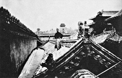 屋顶上的逊帝,北京,20世纪初 1912年逊位时,溥仪还只是一个不到6岁的孩子,享受着“皇室优待条件”,在紫禁城中的生活可以说是无忧无虑。在故宫保存的溥仪照片中,甚至有一张是他站在千秋亭西侧房顶上。佚名 摄 北京故宫博物院 藏 |