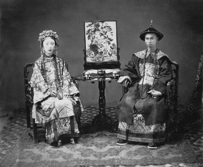 清朝官员夫妇,广东,1860—1862 弥尔顿·米勒 摄 英国伦敦皇家亚洲学会 藏 |