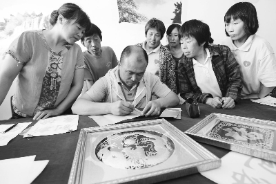 北京市文化志愿者服务中心近日在大兴区长子营镇“温馨家园”举办北京文化志愿者助残活动服务成果发布仪式。据悉,北京市文化志愿者服务中心与北京市残联发出倡议确立的5月文化志愿者“助残月”,开展了一系列丰富多彩的文化助残活动。图为文化志愿者正在教授残疾人朋友学习易拉罐工艺品制作技艺。
