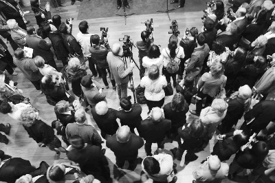 法国在线:4月3日,在巴黎中国文化中心举办的“大山回响——李宝林山水画艺术展”开幕式上,法国观众将大厅围得水泄不通,记者们都感叹这是近期在此举行的中国文化展中最受欢迎的一次。在展厅里,李宝林的画作苍润并济,充满艺术张力和感染力,法国艺术家、批评家、学者都不禁站在一幅幅山水画前徘徊深思。