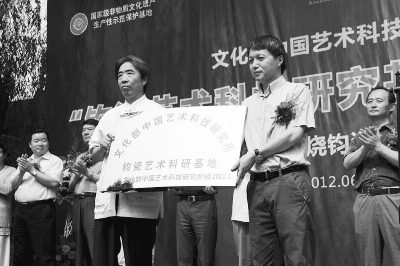 本报讯 6月2日,中国艺术科技研究所“钧瓷艺术科研基地”授牌仪式在河南禹州举行。为了进一步加强对钧瓷艺术的研究与传承,中国艺术科技研究所选择河南禹州星航钧窑公司作为钧瓷艺术科研基地,双方将发挥各自优势,合作建设这一基地。