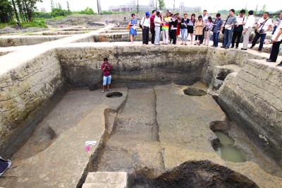 ▶ 6月7日,参观者在上海市松江广富林考古现场参观,这是上海首次向公众开放考古现场。
