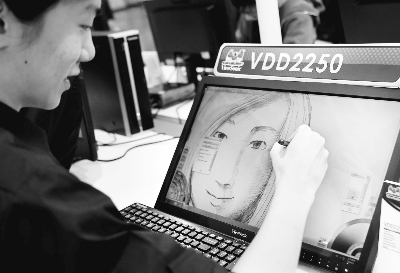 6月5日,2012年台北国际电脑展开幕,本届展览将持续到6月9日,共设5300个展位,吸引约1800家厂商参展。图为在台北国际电脑展南港展览馆展区,优派公司的一名工作人员演示一台支持手绘功能的显示器。新华社记者 侯东涛 摄