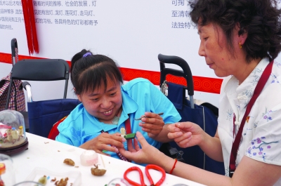 近日,北京市残疾人就业服务中心和北京玩具协会签署了合作意向书,由北京玩具协会的师傅免费教授残疾人学习民间手工艺。图为27岁的残疾姑娘万炎(左一)在跟北京玩具协会的传统技艺大师杨爱玲学做毛猴,不到20分钟,她就完成了自己的处女作——一只跷着二郎腿、摇着蒲扇的小毛猴。本报记者 屈 菡 摄影报道