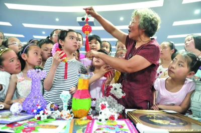 今年65岁的马龙麟是安徽省合肥市蜀山区安居苑小区的一位居民,同时也是合肥十大民间艺人之一。多年来,马奶奶义务到附近的小学将自己的民间传统手工艺“绝活”教授给小朋友们,让他们从小了解、学习我国传统手工艺文化。图为马龙麟在教安居苑小学的孩子们制作手工艺品。新华社记者 郭 晨 摄