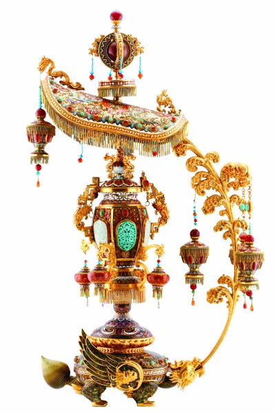在困境面前,张同禄开始思考从作品本身来提升景泰蓝的市场空间。“在国际市场上,有些藏家虽然对景泰蓝一见钟情,但一听说是铜胎制成,其价值便大打折扣。于是我就想,如果用银胎甚至金胎制成,原材料本身价值不菲,加之原材料改变带来制作工艺上的挑战,这样制成的景泰蓝就能迎合部分有实力藏家的需求。”