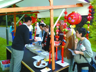 柏林中国文化中心在武术教练吴敏的带领下,以文化中心太极班学员为基础组成了太极表演队、武术表演队和舞龙队,一亮相就吸引了无数目光。他们和柏林中国留学生的民族时装队一齐在“世界公园”多个场所演出,精彩的表演赢得了德国观众的热烈掌声和欢呼声。此外,中国文化中心还在公园内设立了信息咨询台,向游园的德国观众分发介绍柏林中国文化中心的资料和课程表。