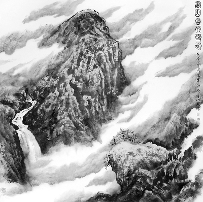 生活的经历与情感的积淀是绘画的基础。王林森的画题材丰富,涉猎广泛,又常有巧妙的构思,寓情于景。他画井冈山,不局限于红色题材,《井冈春晓》等一批作品表现的是那方水土的绿色生态之美。他画庐山,不囿于“井冈山是阳山,庐山是阴山”的说法,将迎客松等景观画得生机盎然、壮美阳刚。