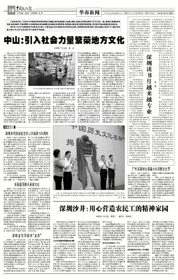 中山:引入社会力量繁荣地方文化本报驻广东记者 林 培