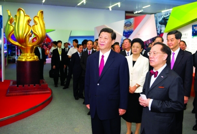 随后,习近平等在曾荫权、梁振英陪同下,兴致勃勃地参观了展览。习近平表示,这次展览是庆祝香港回归祖国15周年系列活动的一个组成部分,很有意义,展览办得很好、很精彩。通过展览,可以让内地民众更直观地了解香港回归以来的发展变化和取得的成就,有助于增进大家对“一国两制”的认识和信心,增强对香港与内地未来共同繁荣发展的信心。