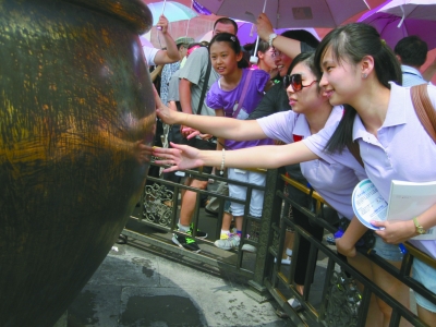 港澳大学生们对故宫表现出浓厚的兴趣,他们在各处流连忘返,细致地观察、讨论,对于故宫里一些头回见的景物和设施,以及那些疑惑已久的历史问题,他们更是迫切地围住解说员,想要一探究竟。