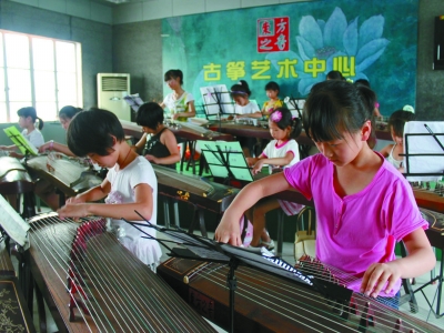 为大力推进公共文化服务,充分发挥公益性文化单位的职能作用,进一步丰富群众的文化生活,山东郯城县文化馆日前针对中小学生启动了2012年暑期免费艺术培训。此次培训活动为期一个月,开设了青少年绘画、声乐、舞蹈、二胡、吉他、钢琴等免费培训项目,已有百余名青少年受益于本次免费艺术培训。图为郯城县文化馆古筝培训班的孩子们在认真练习。高