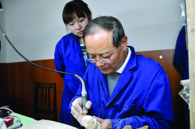 三年来厂里为培养学员投入了大量的人力、物力、财力,倾注了大量的心血,使你们取得了今天的成绩,这其中包括安排我们几位师傅带徒弟、传授技艺。作为传承人,我们义不容辞,但首先是我们不愿看到毕生所追求的牙雕技艺失传。虽然我们中间的大多数人已经退休,但企业召唤我们,要我们把技艺传承下去,对此,我们别无选择,企业毕竟是我们大半生安身立命的“家”呀!我们的象牙厂已经历了54年的风雨历程,在这个行业里已是为数不多的了,而且至今还在脚踏实地干事业,这说明老企业优良传统的魂还在,这是牙雕技艺传承下去的希望!因此第二句话我想说:这个家有你们追求理想的环境,这个家值得信赖!