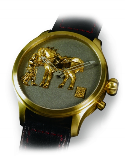 作为今年摩纳哥奢侈品展期间隆重推出“飒露紫”,设计创意来源于唐“昭陵六骏”之一的同名战马,它曾是护卫唐太宗李世民征战的战马。表盘上精雕细琢的22k黄金造型,唐将丘行恭俯首拔箭,飒露紫双目低垂、意态甚恭,一人一马紧紧依偎,战将与神驹情感交融的瞬间牢牢定格在表盘之上,讲述了“忠诚与勇敢”的传奇。
