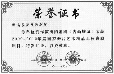 2007年荣获第十届全国精神文明建设“五个一工程”奖,并应文化部邀请作为湖南唯一的剧目代表进京向党的“十七大”献礼演出;
