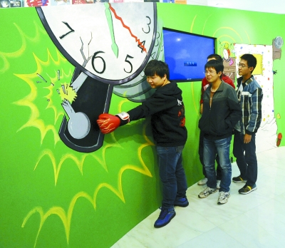 10月27日,位于中新天津生态城内的国家动漫产业园展示中心正式对外开放。该展示中心占地面积1800平方米,展区内汇集了环保水流墙、手机裸眼3D、模拟F1赛车、手机在线对抗等先进的动漫电子设备,可提供影视娱乐、动漫消费品、互动媒体等动漫休闲体验。图为参观者在中心内观赏体验。新华社发(周 伟 摄)