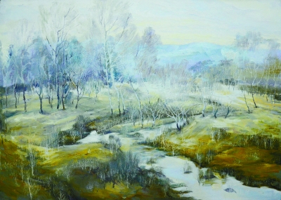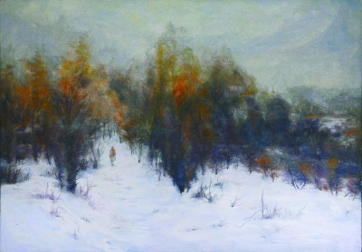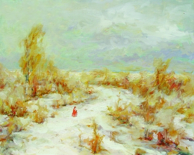 手掬一捧飞雪,曼絮洒落在笔端。春暖花开的日子,他收拾画具,思绪也跟随红霞满天。涅瓦红云、朝阳在光晕变化中绽放成恢弘壮美的奇观。风雪飘飞的严冬,挡不住挥舞画笔的激情。暮霭沉沉,荒野中孤独作画者的身影。一窗昏晓油彩香,俄罗斯独特的自然人文,铸就了李平先生独特的绘画语言。