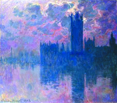 浓雾虽然是威胁人类健康的天敌,但浓雾笼罩下的迷幻景色,却曾经是英国大批文人墨客的创作灵感。著名法国印象派画家克劳德·莫奈曾于1900年至1905年之间居住在伦敦,深深被伦敦的浓雾、泰晤士河上的桥梁和古老的伦敦式建筑所吸引,创作了以当时英国议会所在地——威斯敏斯特皇宫为主题的系列作品,这一系列画作的大小和视角相同,都是从莫奈当时居住的圣·托马斯医院的窗户中看到的威斯敏斯特皇宫的景象,只是画面所表现的时间和天气不一而已。