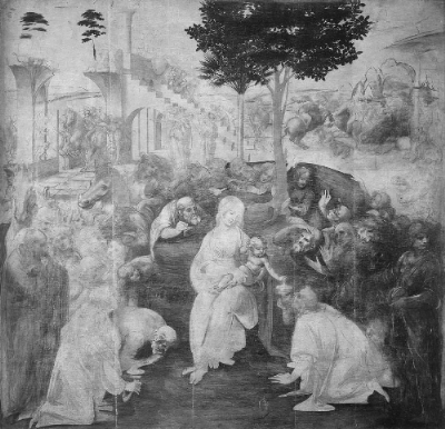 事情的经过大致如此:教士们委托达·芬奇创作一幅圣坛装饰画,期待他展现一个庆贺耶稣降生的传统画面,而达·芬奇却交上一幅革命性的另类作品。塞拉西尼就此推断出这幅画随后的命运:因为教士们拒绝接受,达·芬奇便中止了创作,把它丢弃在一座漏水的仓库里。很多年以后,当达·芬奇的画作成为畅销品时,它被人拿出来清理了一番。一个不知深浅的拙劣艺术家为底稿涂上了颜料,而“镇馆之宝”的真实模样就此被掩盖在了厚厚的颜料之下。