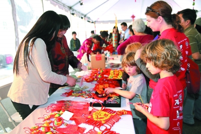 当天的闭幕式以文化庙会的形式进行,内容丰富、形式多样、参与面广,不但有中国南京小红花艺术团的表演、江苏民间艺人工艺品制作与展销,还有当地文艺团组带来的舞龙舞狮以及日本大鼓、韩国跆拳道表演等。图为外国小朋友被中国工艺品深深吸引。本报驻美国特约记者 车兆和