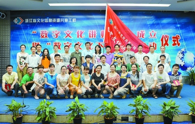 2012年7月19日,浙江省数字文化讲师团成立暨数字文化下基层活动启动仪式举办,浙江省首批“数字文化讲师团”成员整装出发。讲师团的队旗迎风飘扬,映红了团员们一张张年轻的脸庞。