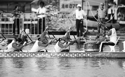 3月13日,2013年中华龙舟大赛(海南·万宁站)在海南省万宁市和乐镇闭幕,国内龙舟劲旅广东顺德乐从男队和佛山九江女队成为“双冠王”。图为获得冠军的佛山九江女队在女子200米直道竞速决赛中。
