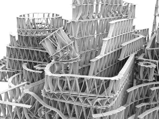 为了这件高约2米、长约3米的作品,杰里米花费了几个月的时间。起初,他只能自己购买“建筑材料”,不久后,一家大型口香糖生产商开始资助他。该几何雕塑的创作原理与用纸牌搭房子的原理相同,由于材料具有可塑性,“高塔”间可以用螺旋形过道来连接。
