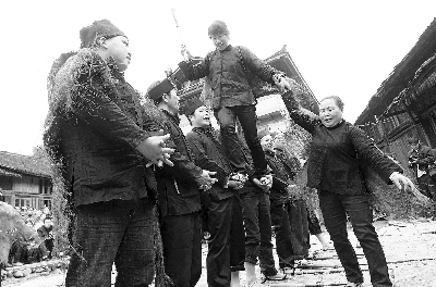 在广西龙胜各族自治县乐江乡宝赠古侗寨,侗族同胞日前举办了一年一度的“萨玛节”文化活动,4000多名侗族同胞欢聚一堂,同唱古老的侗歌,跳起世代流传的侗族歌舞蹈,庆贺这一重要的民族节日。 本报驻广西记者莫曲/文 吴海华/图