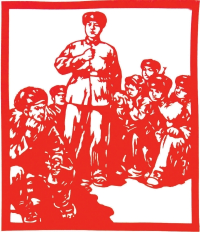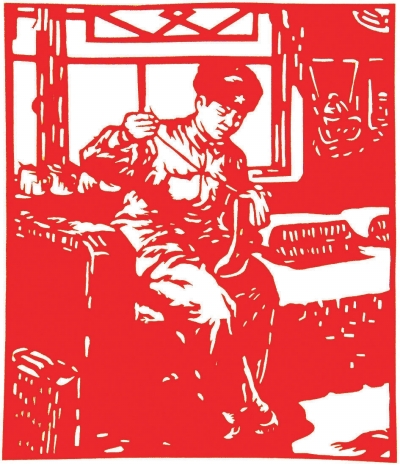 “剪纸雷锋”板块的作品出自福田区民间剪纸艺术团之手。团员们平均年龄69岁,是雷锋精神的伴随者和见证人。他们用极大的热情投入到这次主题创作中:设计构图、研究刀法、观摩讨论、赶制小样。由于团员们年岁已高,不熟悉网络,为了搜集更详尽的资料,儿孙们成了创作的得力助手。
