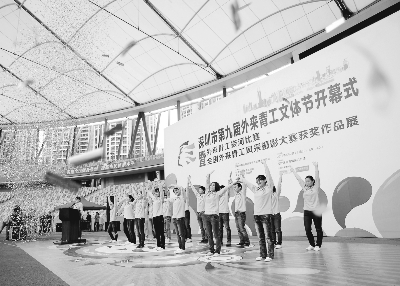 4月26日,深圳市第九届外来青工文体节在宝安区举行开幕式。本届文体节由深圳市委宣传部、市文体旅游局等单位联合主办,以关爱来深建设者为核心,以数百万外来青工为主体,共设重要活动22项。李 文 摄