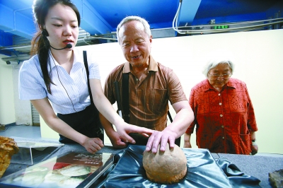 据介绍,此次展览精心挑选出逾20件精美、珍贵的展品,包括恐龙、恐龙蛋等古生物化石,鳄鱼、斑马等大型动物标本,龟类、贝类中小型动物标本以及部分植物化石及标本,较为全面地涵盖了自然史发展阶段的代表物种,为盲人受众提供了依靠触摸认知自然世界的可能。图为展览期间盲人游客在讲解员的引导下参观。本报记者 喻非卿 摄影报道