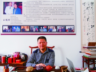王锡军:著名陶艺师、高级工艺美术师、紫砂陶优秀传承人、江苏工艺美术学会会员、中央工艺美术学会会员、美国东方艺术研究会理事。1971年出生于陶都宜兴丁蜀镇陶瓷村制壶世家,师从著名陶艺家邹跃君。从事紫砂壶创作已有20多年,其作品工精、形美、泥料好,极具收藏价值。2000年与夫人王俊花创办王府陶庄工作室。2001年竹编茶壶花瓶被入编《壶魂》。2002年《四方特奎》壶被无锡市博物馆永久收藏。2002年《大富贵》、《斗方》、《半月延年》壶出口法国。2003年捐献宜兴市慈善机构花瓶一对。2005年《四方菱花》、《龙头一捆竹》入编《砂海撷英》。2006年《高风亮节》、《龙蛋》壶等入编《壶论》,《双线竹古》、《掇只》等壶出口马来西亚,好评如潮。2007年4月,应上海市闸北区邀请,作为上海大宁国际茶城开幕式特邀嘉宾现场制壶表演;《合欢》、《苔笠》被《新民晚报》报道。2007年5月,《陶韵》在第八届全国新人新作展中获优秀奖;6月,《美人肩》壶在大连市茶博会上被评为唯一金奖,《吉祥如意》壶在大连市茶博会上被评为优秀奖。2007年7月,《福禄寿》、《样样如意》壶被香港《大公报》独家采访;《一柱擎天》在全国性全手工现场制陶大赛中获三等奖;11月,《四方菱花》壶获第九届西部国际“三品”博览会金奖。2008年7月,《石瓢》壶、《仿鼓》壶获“大连市第四届国际茶博会金奖”;9月,在第二届宜兴紫砂陶全手工技艺大赛中被评为优秀传承人。2009年2月,参加北京“思源”慈善拍卖活动,受到赞扬;3月,香港《大公报》文化专栏整篇报道;8月,我国驻俄罗斯大使选中《样样如意》壶作为国礼赠送给俄罗斯总理普京。2010年5月,应邀为中共中央党校设计制作礼品茶具,受到中央党校后勤服务局领导表扬。2011年6月,为庆祝建党90周年设计制作《光辉历程》壶,受到中央办公厅领导、中央组织部有关领导表扬。2011年8月,应邀为香港设计《香江明月》壶,并出席香港举办的活动;11月,出席由凤凰网主办的“美丽童行”慈善晚宴公益活动,作品《样样如意》壶以9万元拍出,拍卖所得全部捐给慈善机构。还有作品被领导人收藏,中央电视台、北京电视台、河南卫视、新华社、北京晚报等多家权威媒体对王锡军做了报道。 王锡军者,心宽体胖,富贵之态,王府陶庄庄主是也。善言谈,学识渊博,机敏干练中不失质朴,以稳为性,以素为质。问所职何求,答曰,“历尽艰辛不觉苦,赢来赞誉慰平生”,感之,赞之!生于宜兴丁蜀镇陶瓷村的王锡军自幼看母亲制壶。他说制壶很苦、很累,那时候造一个壶只能挣一毛几分钱,母亲每天造20个,以此养家。由于当地家家户户都制壶,中学毕业以后,他自然就跟着母亲学习,后来越做越喜欢,竟达到着迷的程度。资质聪颖的王锡军在充分掌握打泥片等紫砂制作基本技能的基础上,刻苦钻研紫砂雕、塑、嵌、刻、绞、书画等技艺。王锡军的紫砂作品创意新颖、细腻传神,令他很快在紫砂界脱颖而出。
