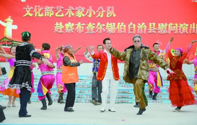 新疆维吾尔自治区文化厅副厅长徐锐军告诉记者,新疆很多少数民族是能歌善舞的,因此对文化有着天然的亲近感,文化艺术在基层群众中所起的作用往往是能够深入内心的。“文化部艺术家小分队的演出,往往是深入到最基层,走到基层群众的身边,把党中央国务院和全国人民对边疆群众的关心和爱护送到了当地各族人民群众的心里,这种效果是其他形式的援疆工作所不能取代的。”徐锐军说,代表着国家一流艺术水准的艺术家们来到基层,带来了形式多样丰富多彩的艺术形式,可以让当地群众感受到根植于各种艺术样式之中的鲜明的中华文化特色,感受到强烈的艺术震撼力,对于增强各族群众生活幸福感、形成更加开放的文化观等具有很大的作用。同时,这些艺术家的到来,为新疆各级文艺院团、基层公共文化工作者提供了一个难得的学习借鉴的机会。