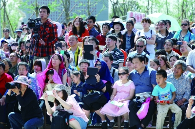 5月19日,园博园紫薇广场上,“北京周”的首场演出拉开序幕,不管是活动负责人还是工作人员都期待着首次亮相的效果。来自房山区的组合表演唱《北京印象》,用快板书辅以欢快音乐的新形式,讲述着北京日新月异的变化;来自平谷区的歌伴舞《幸福乐谷》展现着平谷的风采;另一边舞台外侧的花园里,来自北京少儿昆曲艺术团的小演员们已经化好了装:涂上京剧脸谱,穿上戏服准备上场,精美的扮相引来游客纷纷与之合影……随着现场气氛的逐渐活跃,接二连三的叫好声像一块吸铁石吸引着四面游客纷纷聚拢,园博会组委会宣传活动部活动组组长关向青用“爆满”一词来形容当天现场演出的场景:“人太多,紫薇广场面积也就600平方米,加上一个80平方米的舞台就没多大空间了,我们摆的椅子上坐满了观众,隔了草坪的另一条路上也全是人,广场饱和量也就200人,那天得有五六百人。有的游客看完后问下午还演吗,有的游客老早就来打着太阳伞等下午的演出。”当天,关向青一直和她的工作团队在紫薇广场附近维持秩序,随着人员的聚集,关向青高兴的同时也备感压力,“节目安排符不符合游客的口味、出现意外情况怎样维持秩序我们都得事前考虑。尤其怕安保出问题,所以我们加强了人员的疏导、秩序的维护。”