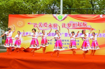 5月20日,由长沙市雨花区圭塘街道主办的“让关爱永驻,让梦想起航”庆祝全国第二十三个助残日活动在中南院社区举行。活动日当天,来自社区的艺术团体为残疾人带来精彩的节目表演,街道辖区内的南雅中学和雨花学校的数十名志愿者也积极参与,圭塘街道8个社区的40余名残疾人代表参加了此次活动。 张 英 摄